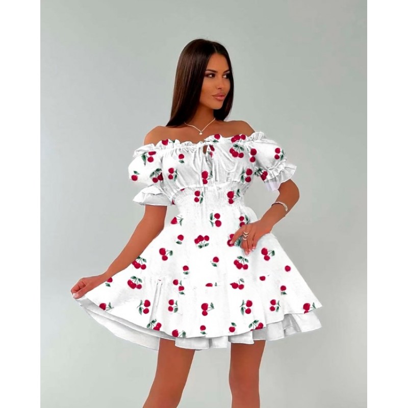 Етикети: лятна рокля, дамска рокля, къса рокля, рокля с череши