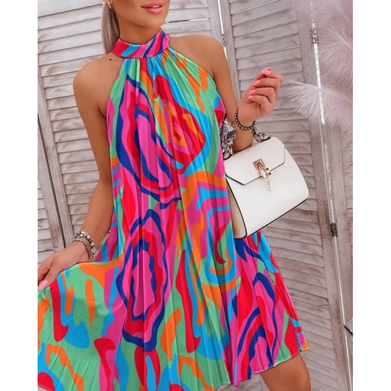 Лятна рокля плисе над коляното топ десен Размер XL за гръдна до ок. 114-118 см, дължина 94 см, може ..