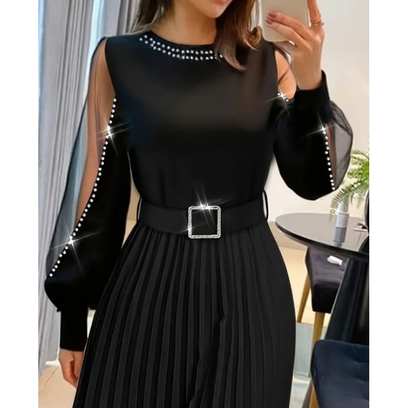 Дамска макси рокля с перли и тюлРазмер 3XL за гръдна ок. 114-120 см, талия 92-96 см, ханш 100-106 см..