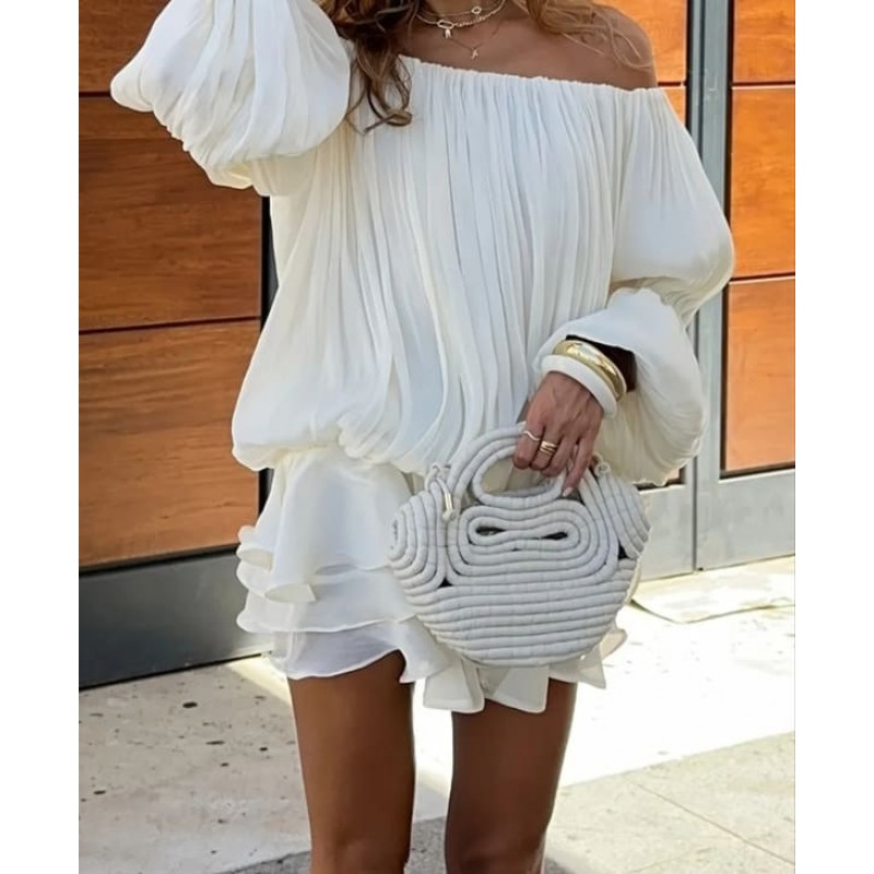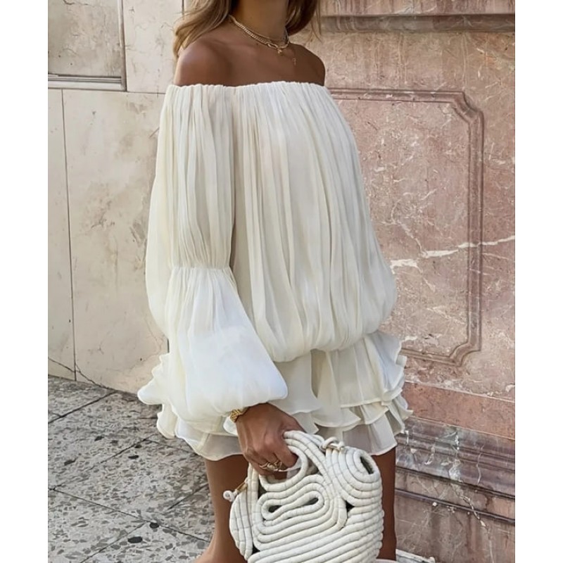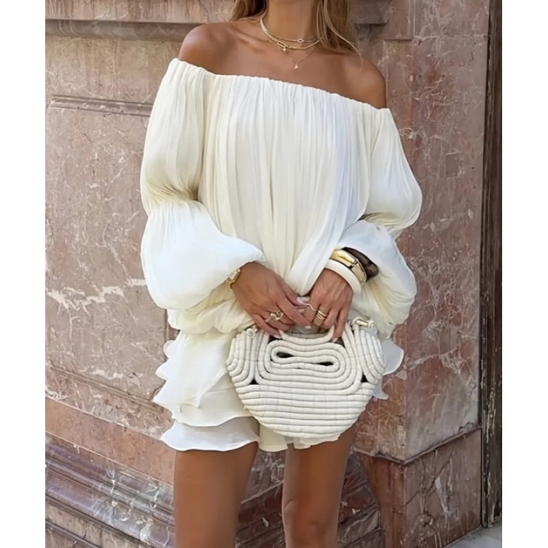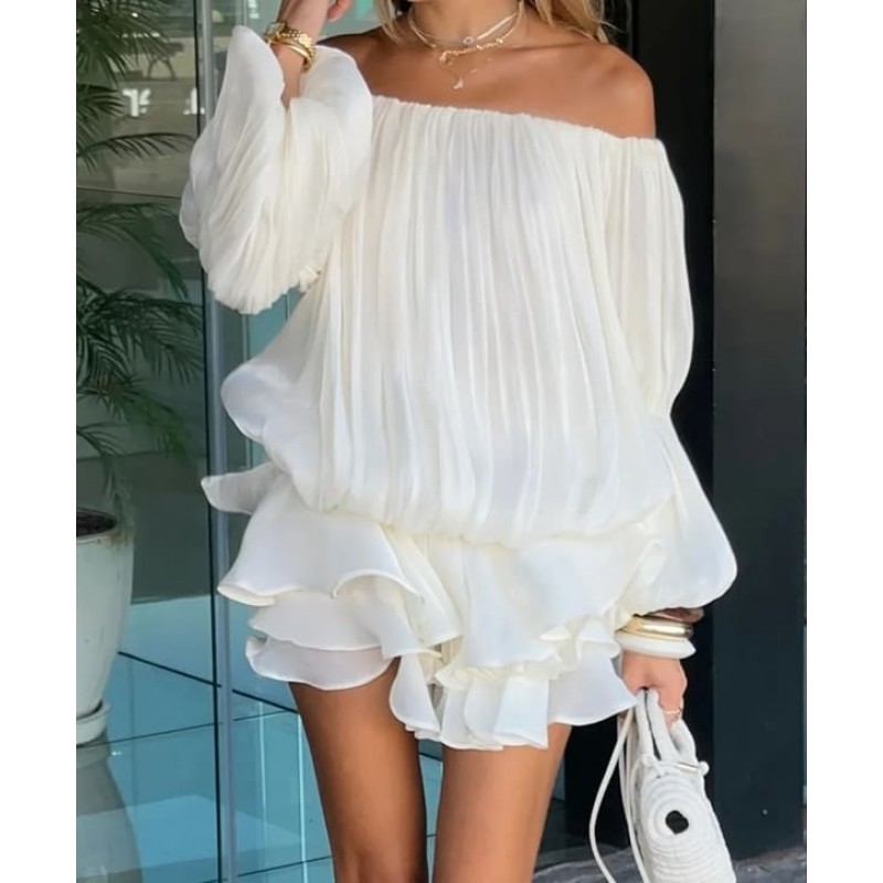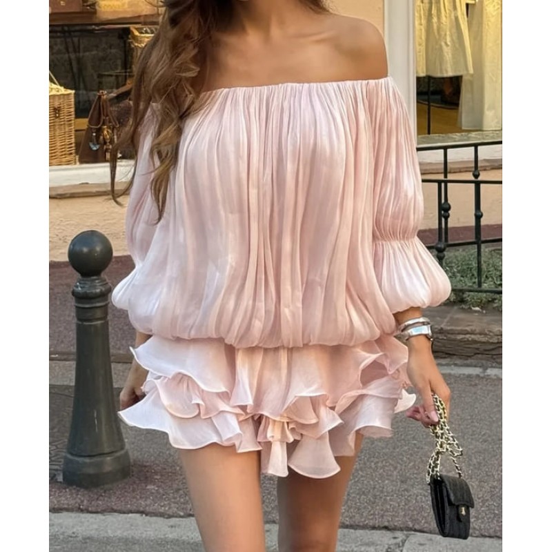 - модерен къс гащеризон с отворени рамене и волани от материя с блясък