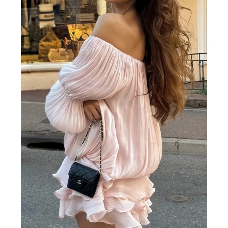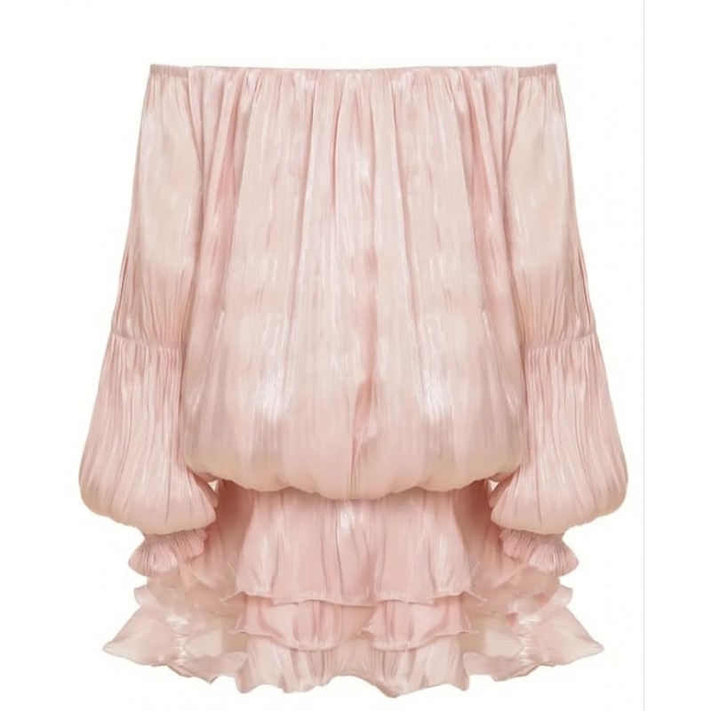 Розов гащеризон от разливна материя с отворени рамене