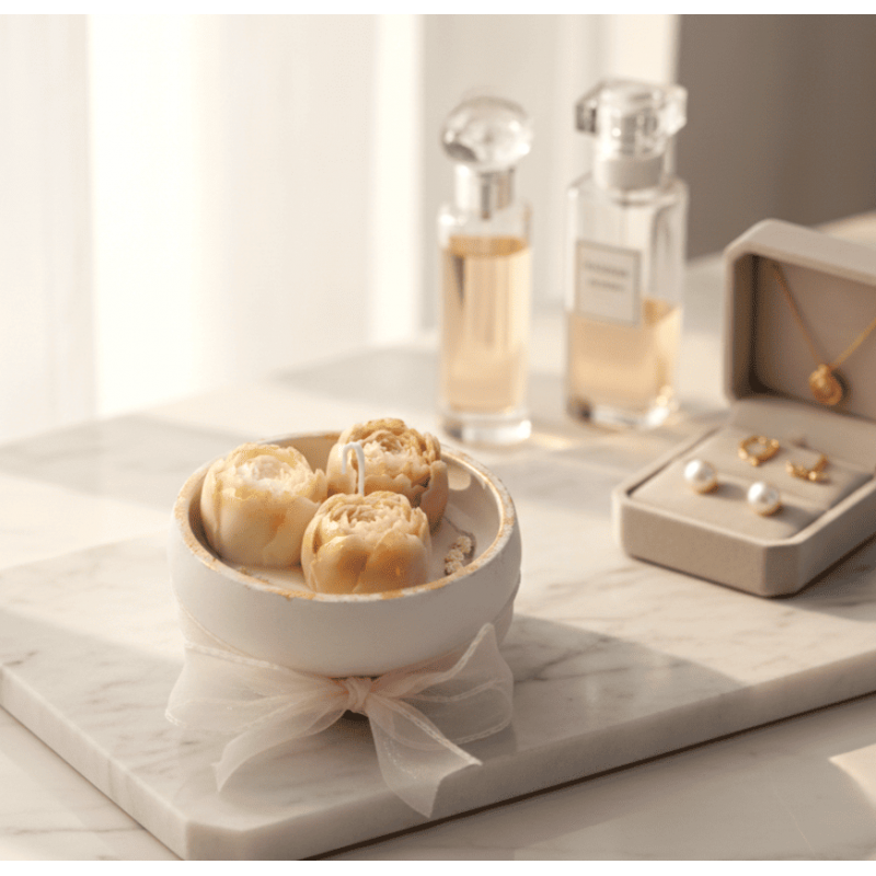 Етикети: соева свещ, подарък свещ, свещ с цветя, подарък свещ