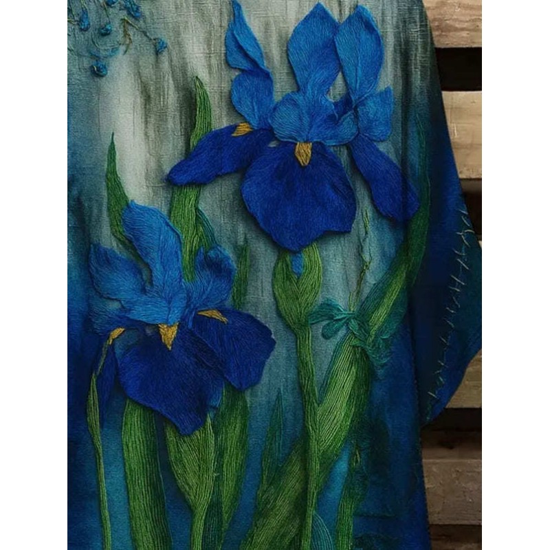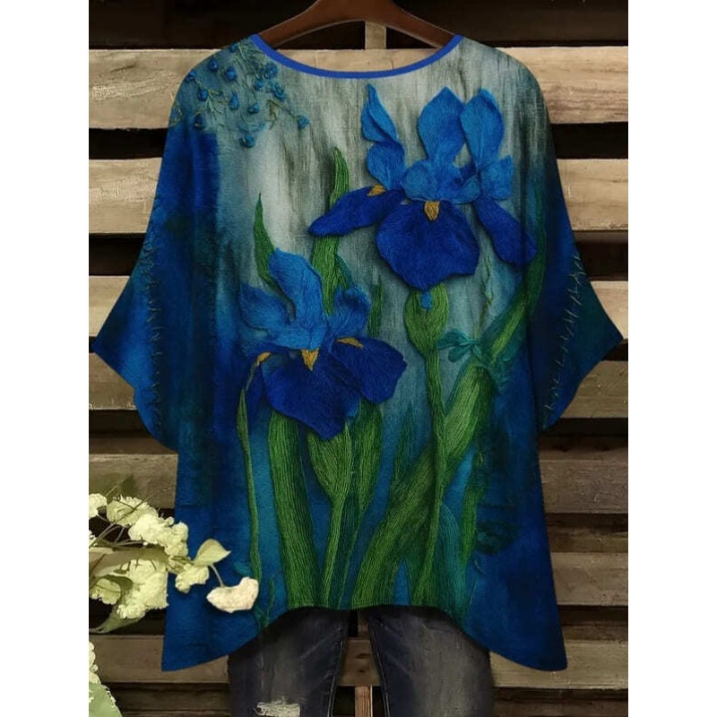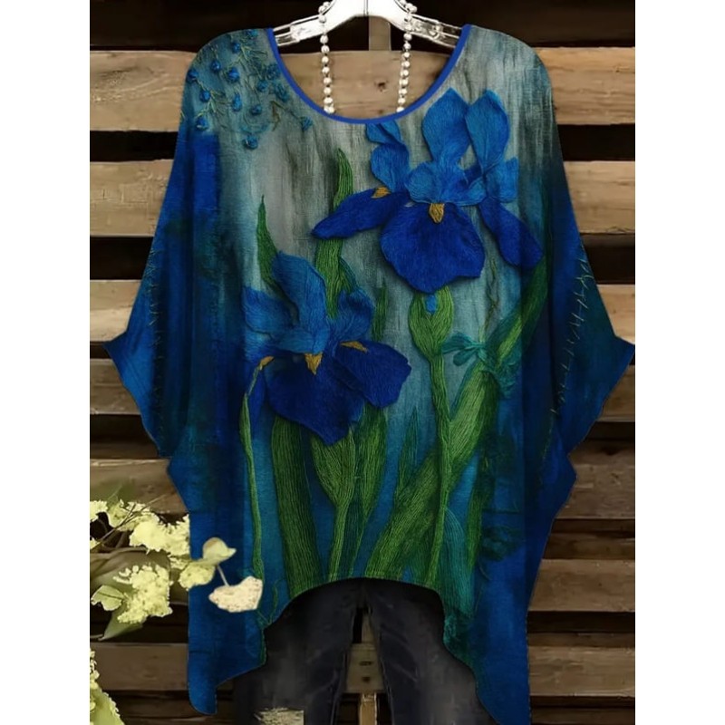 Макси блуза с щампа цветя и три-четвърти ръкавиРазмери S, ХLдамска блуза за есента от фино еластично..