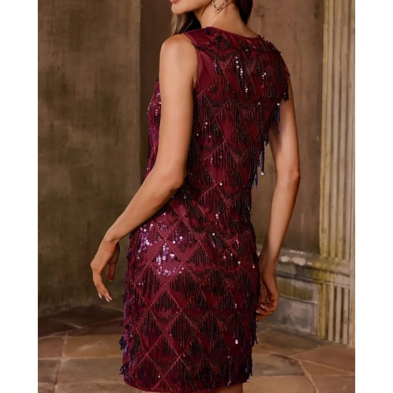 Етикети: коктейлна рокля, вечерна рокля, официална рокля, рокля с ресни, рокля бордо
