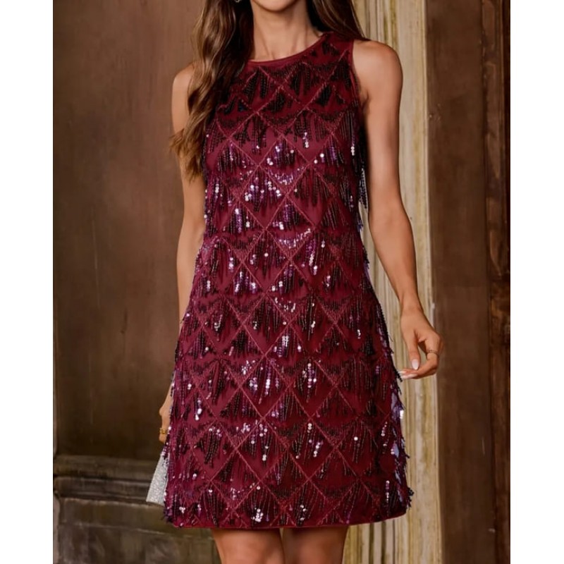 Вечерна рокля с ресни цвят бордо - Очакваме размер М до 12-15.12.