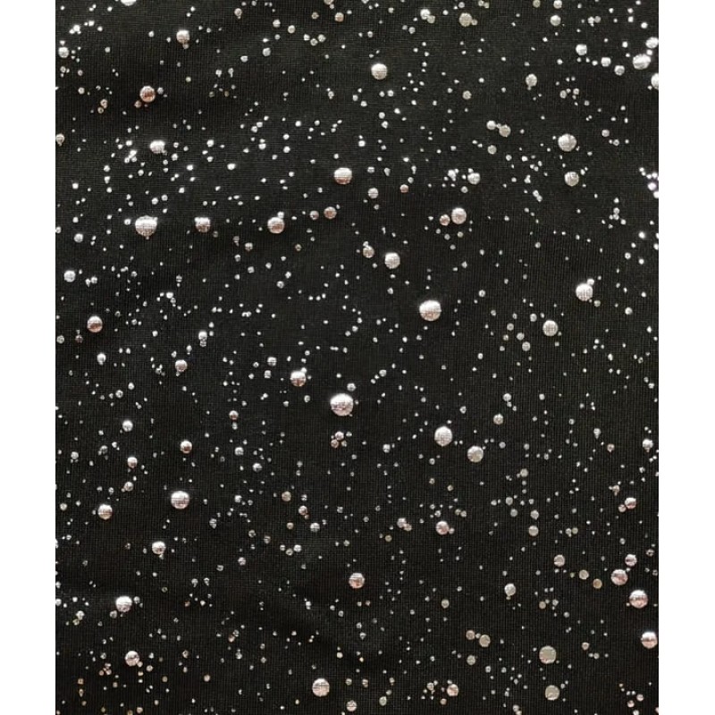 Вечерна рокля със сребриста щампа разкроен модел около коляното