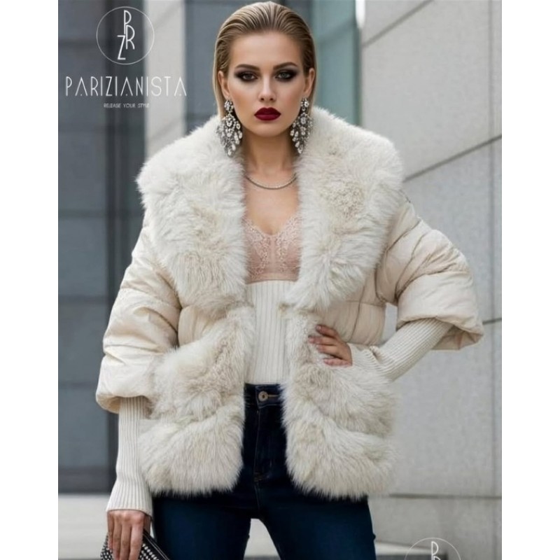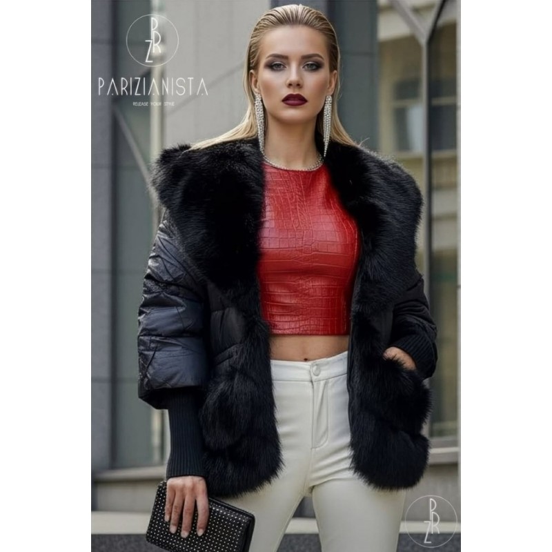 - модерно зимно яке с еко-гарнитура, еко-яка и маншети тип плетиво